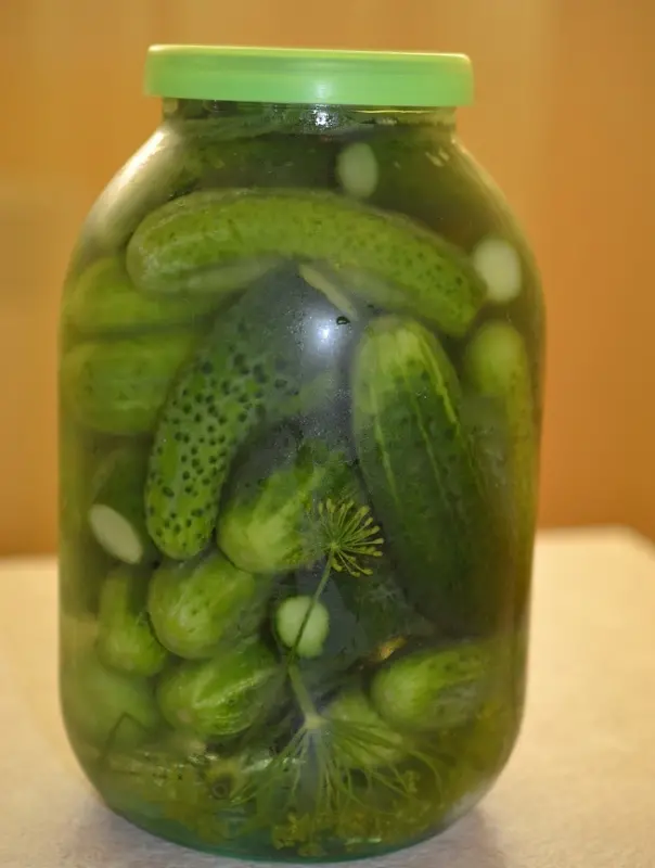 Выбор огурцов играет ключевую роль. Их желательно брать одного размера, тщательно промыть, а затем вымочить в воде на протяжении трех часов. После этого огурцы укладываются в банки, пересыпаются пряностями и заливаются холодным 5%-ным солевым раствором (на 1 литр воды — 50 граммов соли).