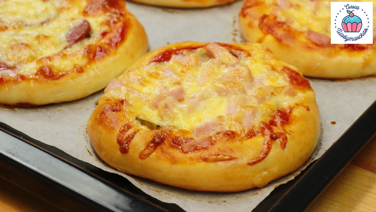 С такой пиццей дети точно будут счастливы. Из партии получается 12 штук, сразу можно съесть 5-6, остальные можно сохранить в холодильнике или даже заморозить на потом. Удачной выпечки!