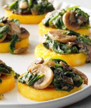 - Грибы и шпинат: шампиньоны обжариваются с луком, вместе с пропаренным шпинатом создадут отличный тандем;