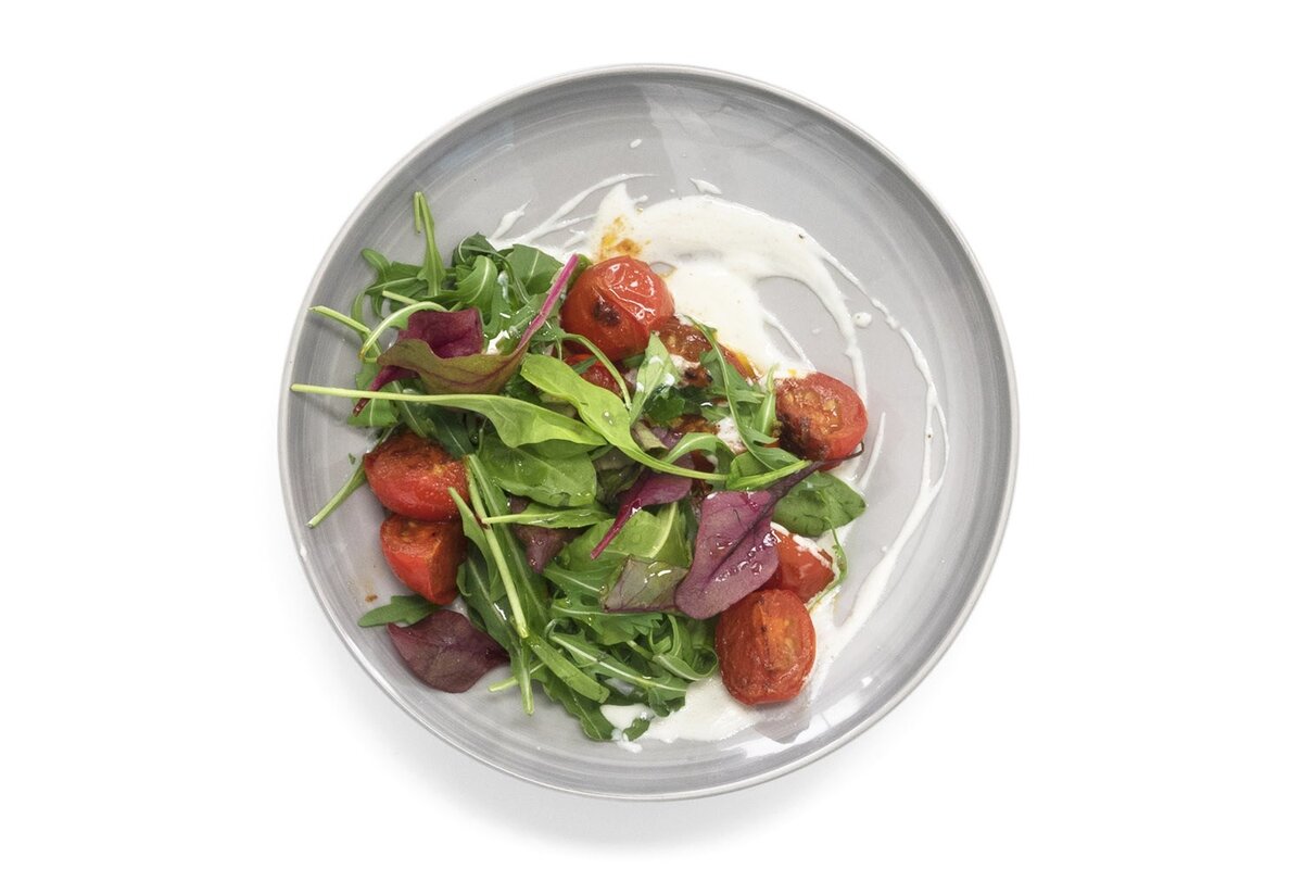 Приготовление освежающего салата с жареными помидорами и легким йогуртовым соусом – отличный способ насладиться ярким вкусом и полезными ингредиентами. Этот соблазнительный салат станет настоящей звездой любого стола.