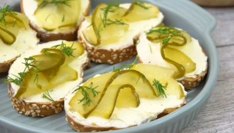 Для создания вкуснейших бутербродов, нарежьте багет, слегка подсушите его на сковороде или в духовке, намазать маслом и добавьте свежие огурцы. Украсить зеленью – отличный финал!