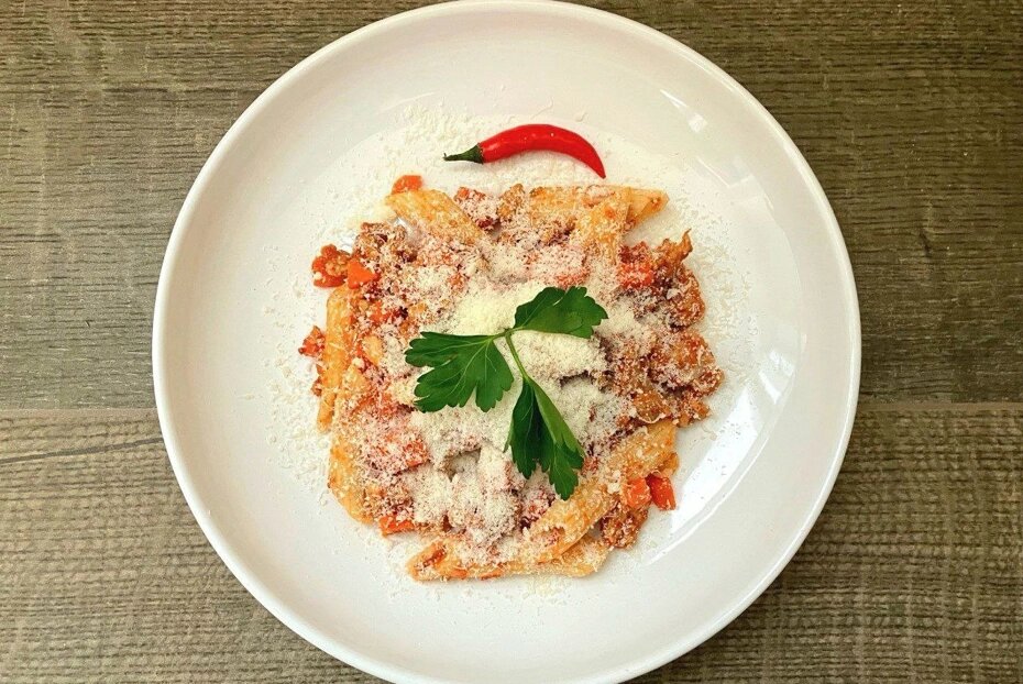 Петрушку промыть и перевязать ниткой.Очистить и мелко нарезать морковь.Лук очистить, промыть и нарезать кубиками.Чеснок очистить, затем мелко нарезать.Перец промыть, разрезать вдоль и удалить семена.Мясо тщательно промыть и обсушить, после чего нарезать небольшими кусочками.В кастрюлю с толстым дном на среднем огне влить немного масла и обжарить мясо в течение 5 минут, не забывая помешивать.Добавить лук и морковь, продолжать жарить еще 15 минут.Влить томатный сок, добавить чеснок, перец и пучок петрушки, тушить 30 минут на медленном огне.Пока мясо тушится, отварить пасту до состояния аль денте, затем откинуть на дуршлаг, сохранив немного воды от варки.Удалить петрушку и перец из соуса, добавить оставшуюся воду, соль и специи. Все аккуратно перемешать.Смешать пасту с мясом и овощами, довести до полной готовности. Перед подачей посыпать тертым сыром, украсить остатками петрушки и перцем.Попробуйте этот замечательный рецепт и поделитесь им с друзьями в своих социальных сетях. Готовьте с добавлением любви и наслаждайтесь каждым укусом!