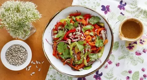 Теплый салат из обжаренного сладкого перца и семечек – это настоящая находка для любителей ярких вкусов. Этот оригинальный рецепт удивит даже самых привередливых гурманов своим восхитительным сочетанием свежих ингредиентов.