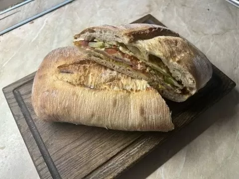 - Чиабатта: 1 большая. Размер булки можно варьировать по желанию.