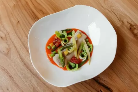Вдохновляющее кулинарное искусство шеф-повара ресторана Champ Bistro, Арины Журавлёвой, предлагает уникальный рецепт спинки трески с аппетитным соусом минестроне и разнообразием овощей. Это идеальный выбор для семьи или компании.