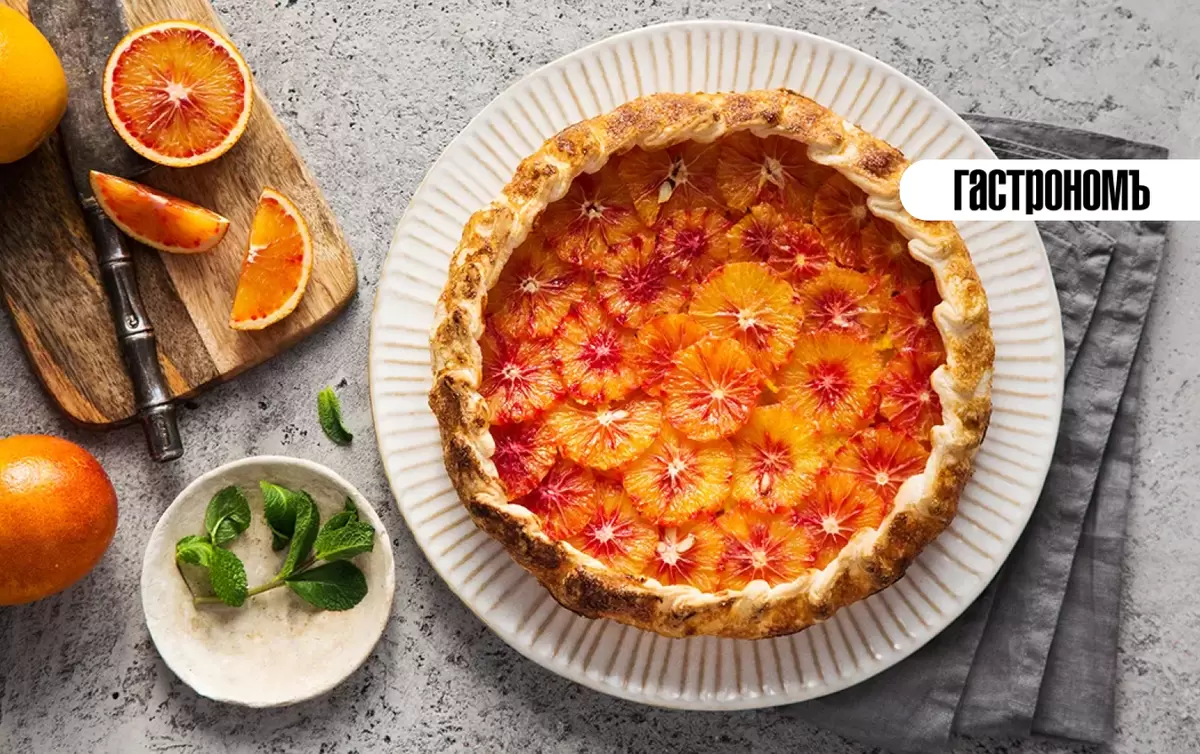 - Пирог-перевертыш: Плоды апельсина с карамелью — красиво и аппетитно. Тесто готовится на основе кефира с яркими добавками цитрусовых.