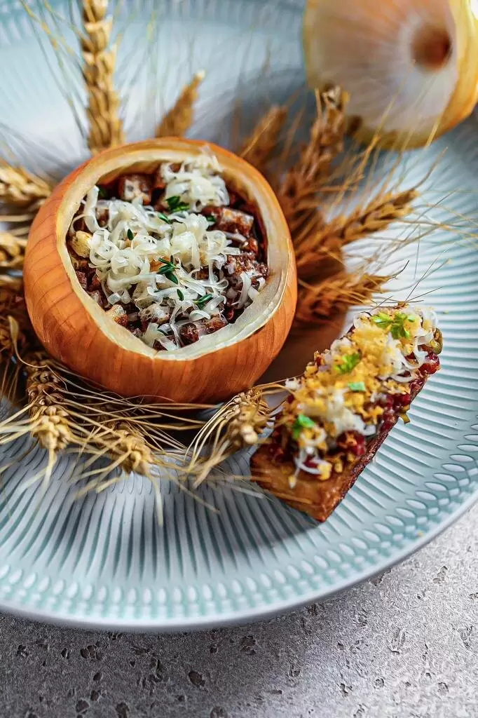 Луковый суп стал настоящей классикой среди первых блюд, особенно в сердце российской гастрономии — Москве. Несмотря на свою простоту, этот изысканный суп получил множество интерпретаций, и одна из самых оригинальных принадлежит шеф-повару Эдуарду Архипову из гранд-кафе «Шануар». В своем исполнении он удивительно сочетает традиционный рецепт с креативной подачей — вместо привычной тарелки, суп подается в тщательно вычищенной луковице.
