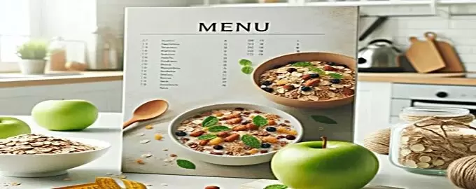 - Завтрак: Овсянка с ягодами и орехами.