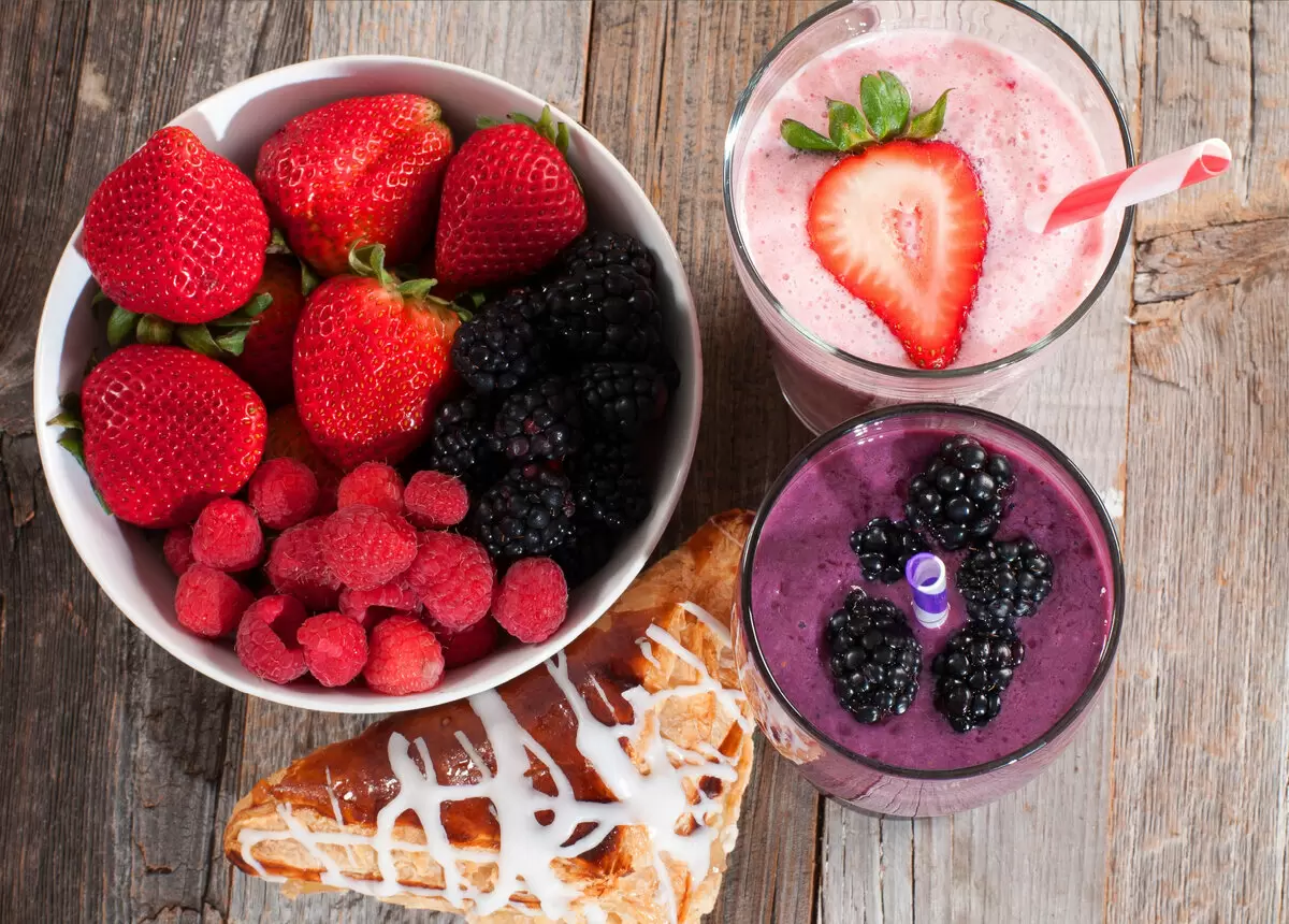 Этот ягодный смузи обладает ярким вкусом и богат витаминами. Черешня преисполнена антиоксидантами, клубника славится высоким содержанием витамина С, а ежевика — источником фолиевой кислоты. Такой смузи не только придаст сил, но также станет настоящим украшением любого летнего стола!