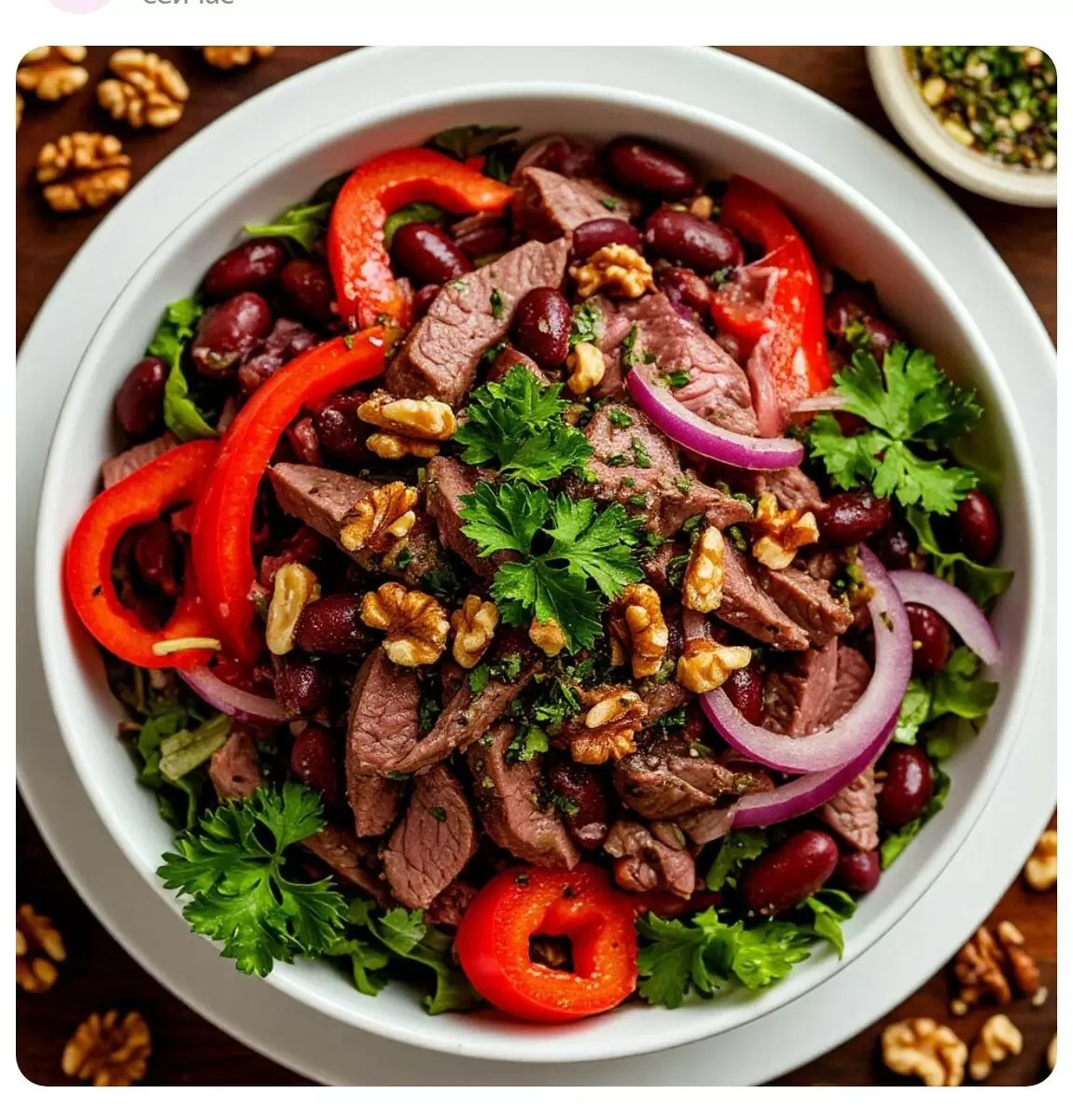 Салат Тбилиси не только порадует вас восхитительным вкусом, но и насытит полезными веществами, включая белки и витамины. Приятного аппетита!