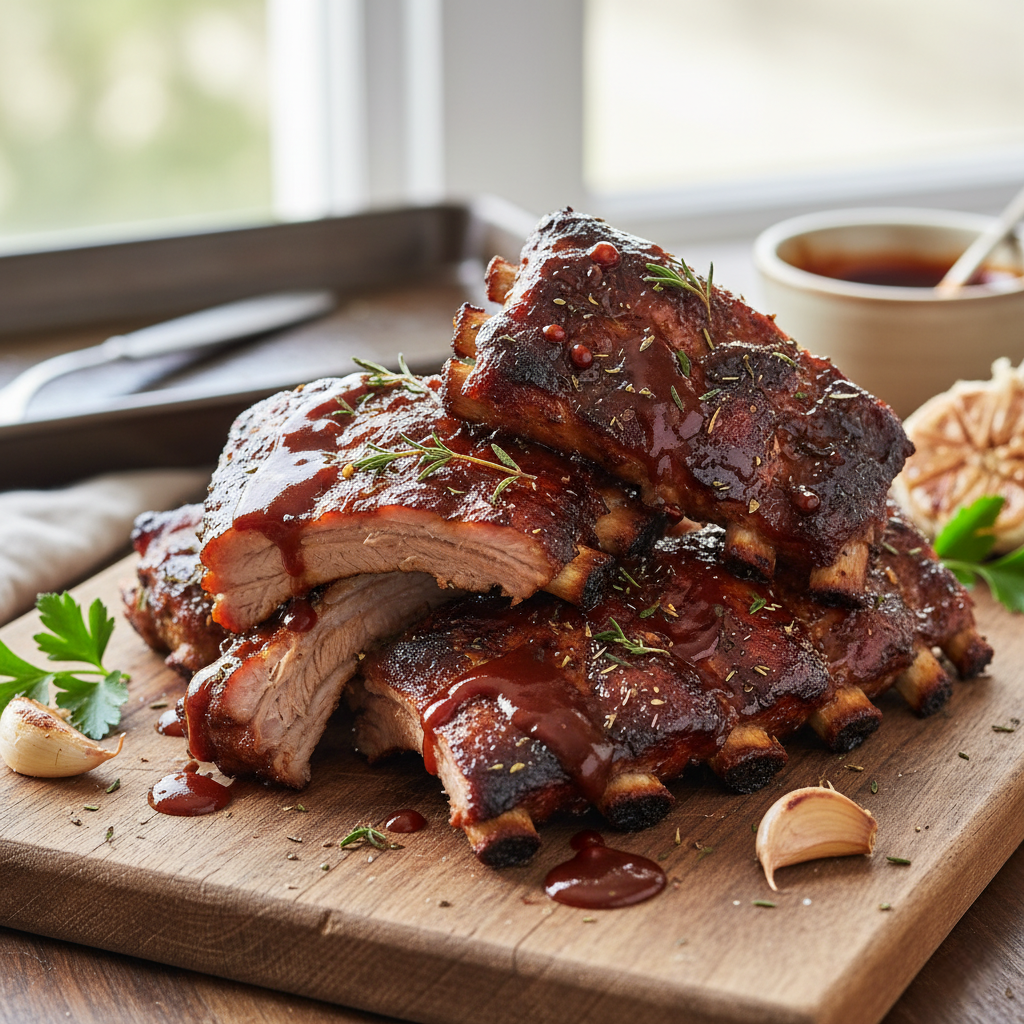 5. Подача: Как только рёбра готовы, дайте им немного остыть. Разрежьте на порции и подавайте горячими, украсив свежей зеленью и овощами. Это не просто ужин, это настоящее кулинарное шоу!