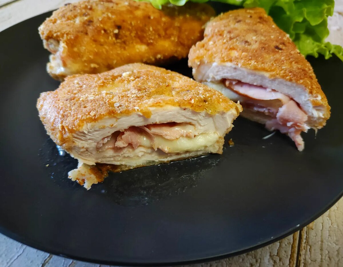 Готовое блюдо впечатляет хрустящей корочкой и нежной, сочной начинкой. Такие кордон-блю можно смело подать не только на семейный ужин, но и на праздничный стол, чтобы порадовать гостей изысканным кулинарным шедевром.
