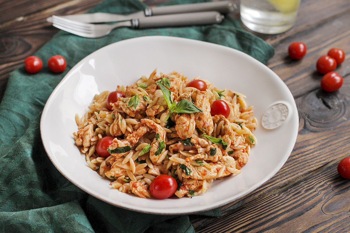 Курица карри, приготовленная с томатами черри и пастой орзо, — это изысканное, но при этом быстрое и легкое в приготовлении блюдо. Орзо, представляющее собой миниатюрную пасту, напоминающую рис, отлично дополняет блюда, придавая им уникальный вкус и текстуру. Это итальянское «зерно» имеет альтернативное название — пунталетте, и используется не только в супах и салатах, но и как замена кускусу в восточной кухне, пишет Дзен-канал "Кулинарный блог «Ужин Дома»".