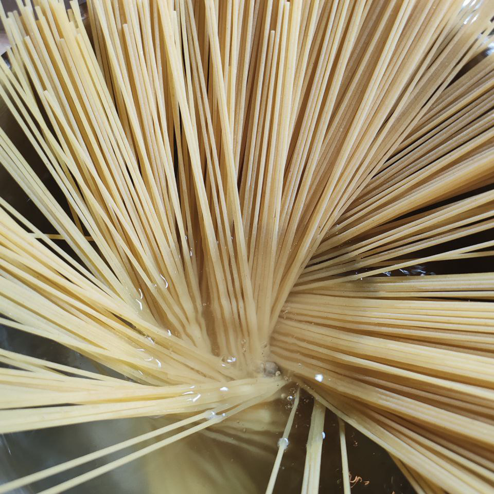 Шаг 1: Начните с подсоленной воды и доведите ее до кипения. Затем добавьте спагетти и варите до состояния аль денте, оставив немного воды (примерно 200-300 мл) для дальнейшего использования.