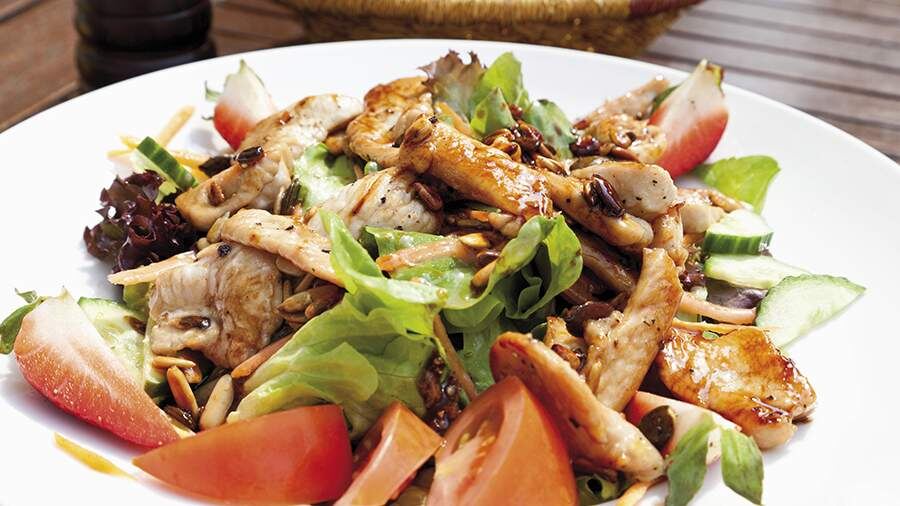 Курицу нарезают кубиками, тыкву — ломтиками, а лук мелко рубят. На разогретой сковороде обжарить лук до золотистого цвета, добавить курицу и готовить до полной готовности. Затем в смесь добавляют тыкву, солят и перчат, тушат на среднем огне до мягкости овощей.