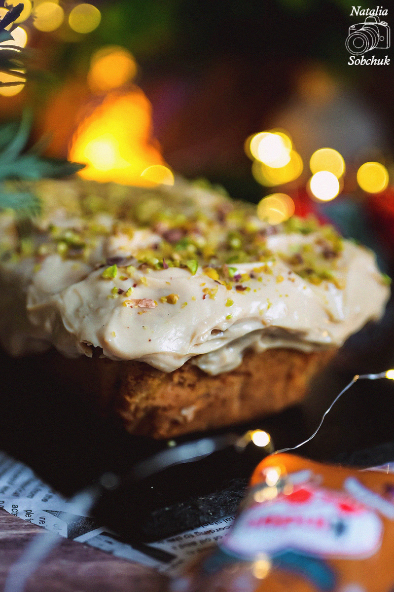 Готовый кекс украсить кремом и посыпать измельчённой фисташкой. Такой десерт не только порадует своим вкусом, но и поднимет настроение!