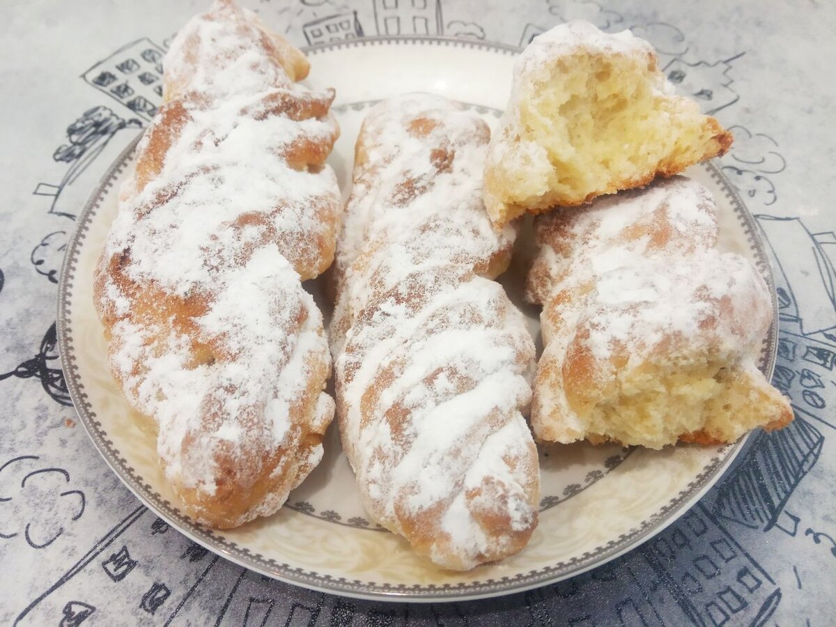 Приготовленные булочки посыпьте сахарной пудрой после охлаждения и подавайте к чаю.