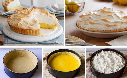 На остывшую основу выложите лимонный крем, а сверху аккуратно распределите меренгу. Верните торт в духовку на 15 минут без изменения температуры. Затем увеличьте до 200 градусов и выпекайте еще 10-15 минут. Торт с лимонной начинкой и безе готов к подаче!