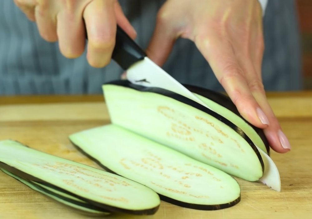 Пока варится перловка, стоит заняться рыбой. Очистить её от внутренностей, промыть и нарезать на порционные куски. Приправить солью и специями, оставить на 15 минут. Баклажаны нарезать толстыми пластинами, посыпать солью и оставлять на полчаса, чтобы они впитали меньше масла при жарке.