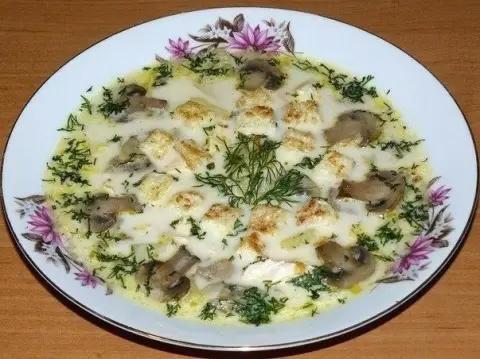Подавайте сырный суп в тарелках, посыпав сверху ароматными гренками — это добавит хрустящей текстуры и сделает блюдо еще более аппетитным!