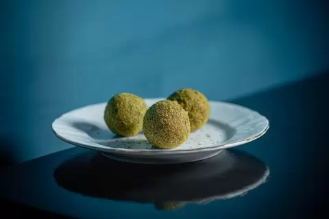6. После охлаждения нарезать массу на равные части и скатать в шарики. Подавать со вкусом!