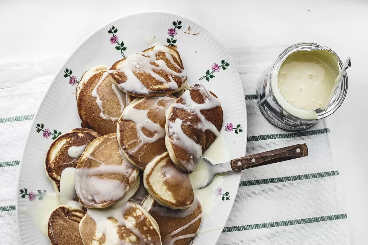 Шаг 2: Разогрейте сковороду с одной столовой ложкой растительного масла. С помощью столовой ложки выкладывайте тесто на раскалённую сковороду. Жарьте на среднем огне до появления пузырьков, после чего переверните оладьи. Чтобы добиться идеальной корочки, важно следить за температурой и не допускать остывания сковороды. Подавайте оладьи горячими, полив их сгущённым молоком.