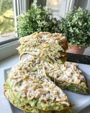 Приготовить начинку: натереть сыр и смешать его со сметаной и измельченным чесноком. Каждый корж смазывать начининой по мере жарки. Блюдо готово к употреблению сразу – сыр внутри расплавится и создаст потрясающую тянущее текстуру. Наслаждайтесь!