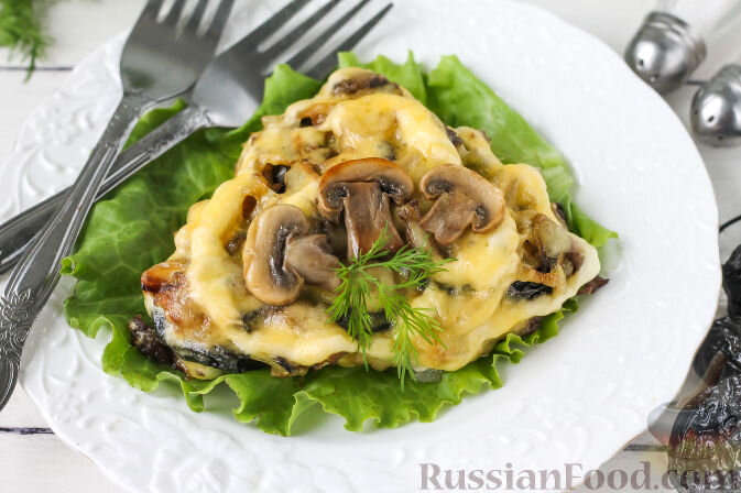 Не забудьте порадовать своих гостей запечёнными отбивными с черносливом, грибами, орехами и сыром — такое блюдо станет украшением любого стола.