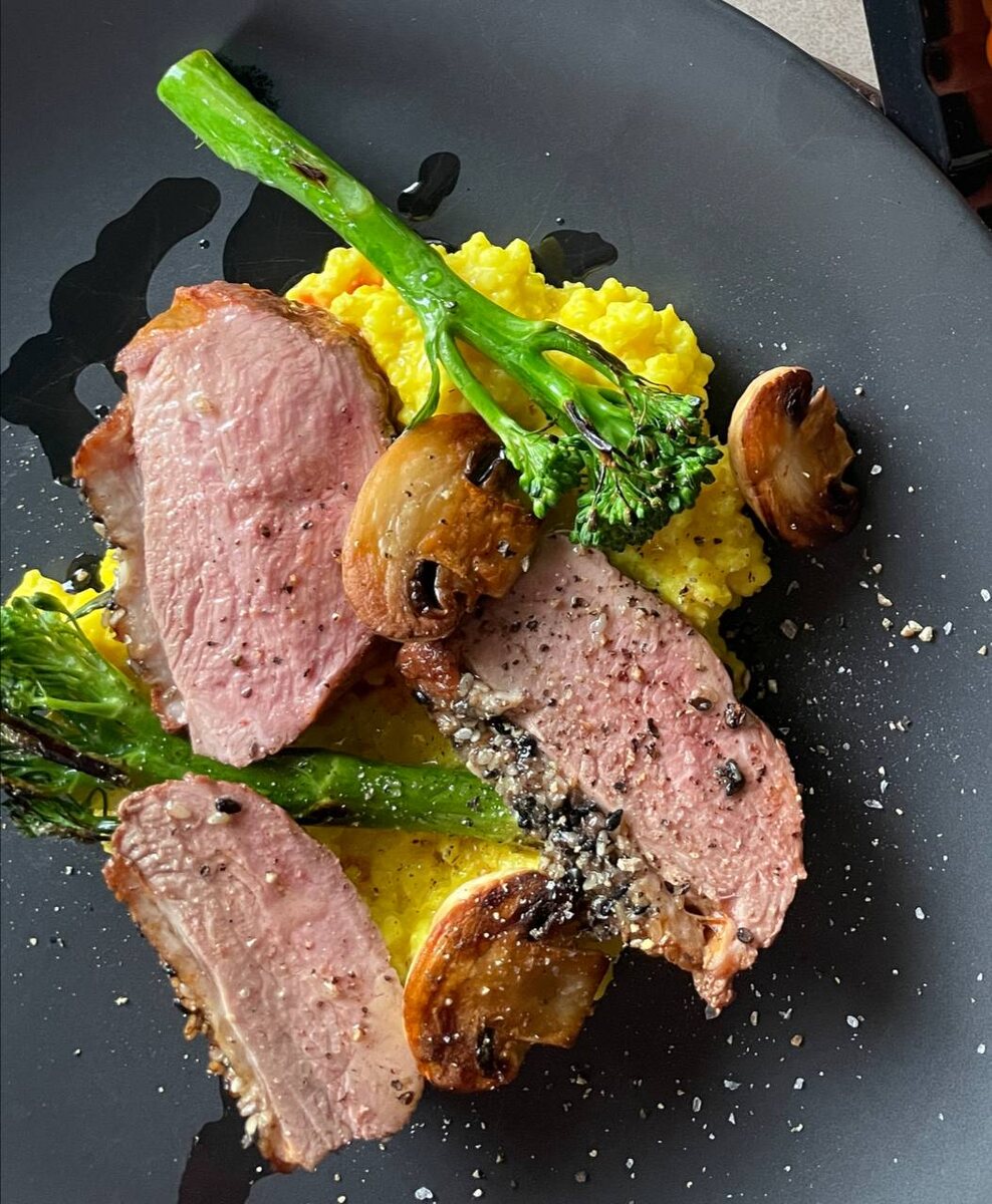 Когда все компоненты готовы, пшенка выкладывается на тарелку, на нее помещаются нарезанные ломтики утки, сверху укладываются обжаренные грибы и брокколи. Блюдо вызывает восхищение и гарантированно станет украшением любого стола.